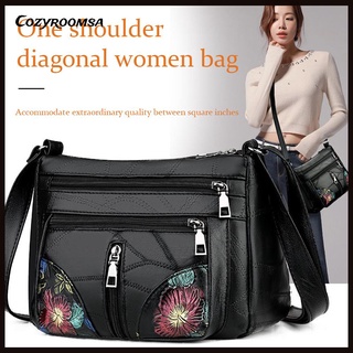 Túi Đeo Vai Da PU Họa Tiết Thêu Có Khóa Kéo Thời Trang Cho Nữ