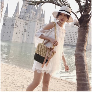 Túi xách dệt rơm rỗng đi biển thời trang mùa hè dành cho nữ