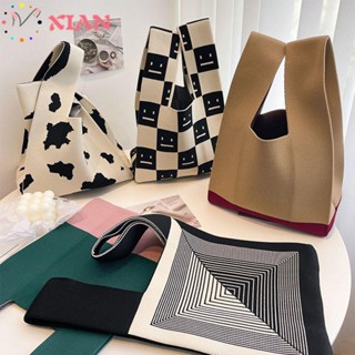 Túi Xách Đeo Vai Đan Len Họa Tiết Sọc Caro Màu Sắc Có Thể Tái Sử Dụng Cho Nữ