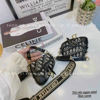 túi đeo chéo, túi mini yên ngựa thổ cẩm có chữ D treo túi dây chữ bản to siêu xinh