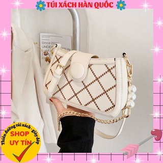 Túi Xách Nữ Đeo Vai - Túi Đeo Chéo Dây Xích Phối Ngọc Thêu Trấn Trám 357