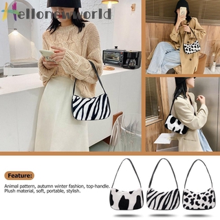 Túi đeo vai/xách tay lót vải lông mềm họa tiết da bò sữa/ngựa vằn thời trang thu đông cho nữ