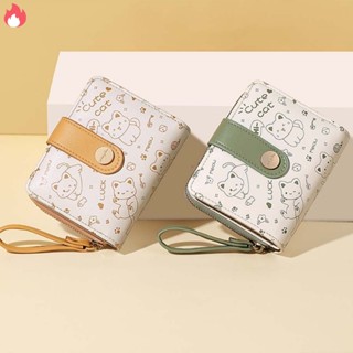 Ví Ngắn Đựng Tiền / Thẻ Có Khóa Kéo In Hình Mèo Dễ Thương Phong Cách Nhật Bản Cho Nữ