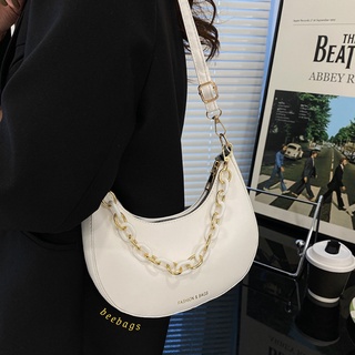 Túi Bán Nguyệt Chất Liệu Da Phối Dây Xích Cá Tính Màu Đen, Trắng, Bạc | TX119 | Túi Half Moon Cá Tính Phối Khóa Đeo Vai