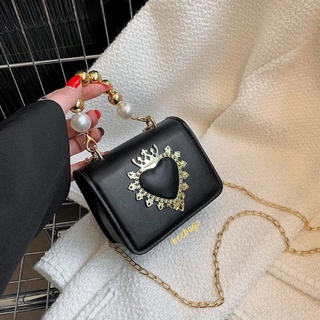 Túi Mini Dây Ngọc Cầm Tay Họa Tiết Trái Tim Vương Miện Sang Chảnh | TX42 | Túi Cầm Tay Kèm Dây Xích Màu Be, Trắng, Đen