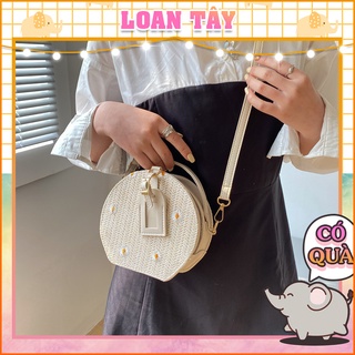 Túi Cói Phối Da Dáng Tròn Western Đeo Chéo Phong Cách Hàn