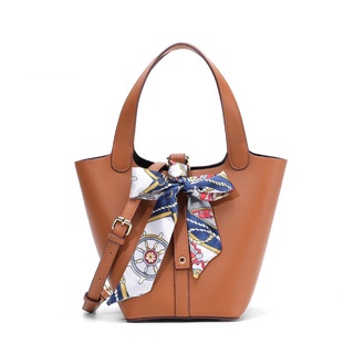 Túi Xách Da Mềm Phối Khăn Lụa Thời Trang Cổ Điển Cho Nữ