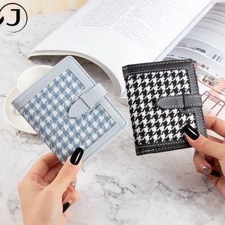 KAITIFEI Ví đựng thẻ mini nhỏ gọn thời trang đẹp da ngắn gập houndstooth phối dây khoá kéo có nhiều ngăn nhỏ cho nữ