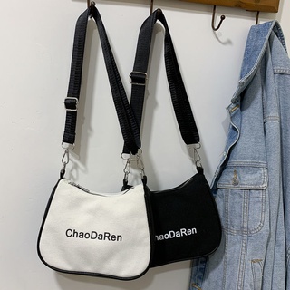 Túi đeo chéo một bên vai bằng vải canvas phiên bản Hàn Quốc dành cho nữ
