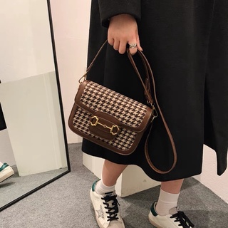 Túi Đeo Chéo Hoạ Tiết Kẻ Khoá Gập Nữ Tính