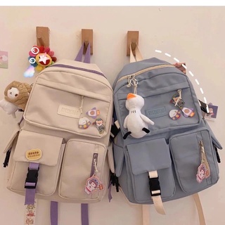 Balo Ulzzang nam, nữ màu hồng xanh pastel basic chống nước đi học đi chơi phong cách Hàn Quốc tặng kèm móc khoá hình thú