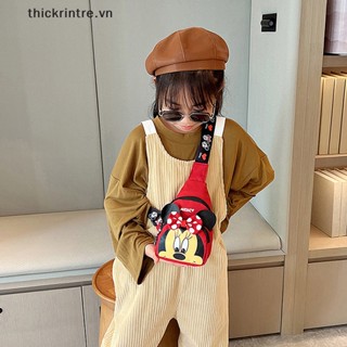 Túi Canvas Đeo Chéo Mini Phối Màu Tương Phản Họa Tiết Hoạt Hình Cho Bé