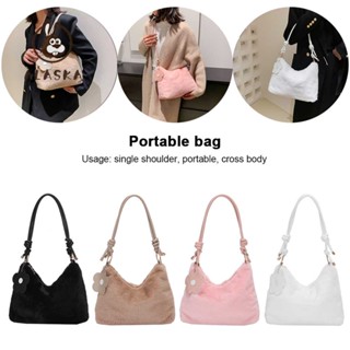 Túi Đeo Vai / Xách Tay Bằng Lông Nhung Mềm Ấm Áp Màu Trơn Có Tay Cầm Tua Rua Cho Nữ