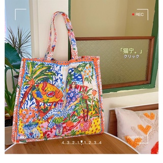 Túi Xách Canvas Hai Mặt Cỡ Lớn In Họa Tiết Hoa Thời Trang