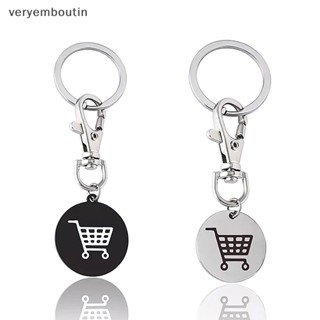 Móc Khóa Tròn Màu Đen Bằng Thép Không Gỉ in Logo Xe Đẩy Mua Sắm Sáng Tạo