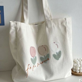 Túi Xách Canvas Cỡ Lớn Họa Tiết Hoa Tulip Thời Trang Cho Học Sinh