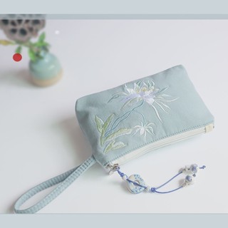 Ví Canvas Thêu Hoa Có Khóa Kéo Đựng Điện Thoại Chìa Khóa Tiện Dụng