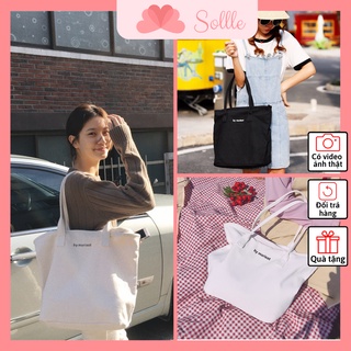 Túi tote vải canvas đơn giản Merci có ngăn phụ và khóa kéo Sollle phong cách Hàn Quốc TO02P