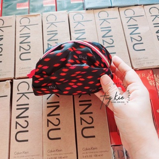 Túi Mỹ Phẩm Elle Họa Tiết Môi Nền Đen