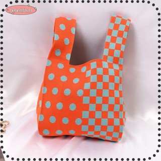 BEBETTERM Túi Xách Đan Len Họa Tiết Ca Rô Thời Trang Dành Cho Nữ