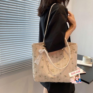 BORAG Túi Đeo Vai Đan Rơm Thủ Công Cỡ Lớn Màu Tương Phản Thời Trang Đi Biển Cho Nữ