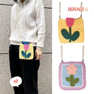 BORAG Túi Đeo Chéo Đan Len Họa Tiết Hoa Tulip Thời Trang Cho Nữ