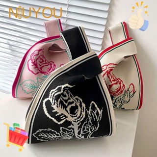 NIUYOU Túi Xách Đan Len Thủ Công Họa Tiết Hoa Xinh Xắn Cho Nữ