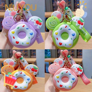 NIUYOU Cherry Doughnut Wallet Pouch Gift Key Ring Key Bag Keychain Silicone Wallet Coin Purse