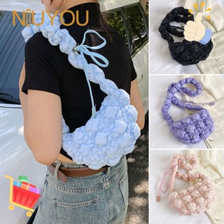 NIUYOU Túi Đeo Vai Màu Trơn Kiểu Xếp Ly Thời Trang Xinh Xắn Cho Nữ