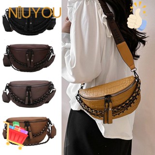 NIUYOU Túi Đeo Chéo Da PU Phối Dây Xích Thời Trang Cho Nữ