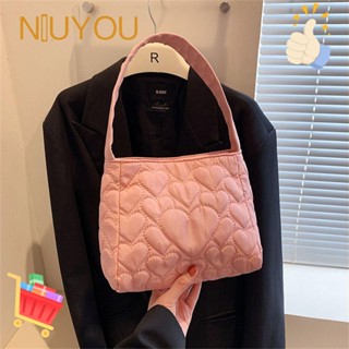 NIUYOU Túi Tote Cotton Màu Trơn Có Đệm Bông Mềm Mại Họa Tiết Trái Tim Sức Chứa Lớn Thời Trang Cho Nữ