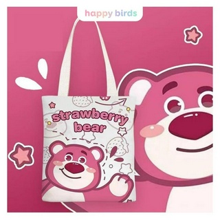 Túi tote vải canvas đeo vai hoạt hình gấu dâu vải bố canvas đựng đồ đi học thêm đi chơi phong cách Hàn Quốc HappyBirds