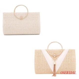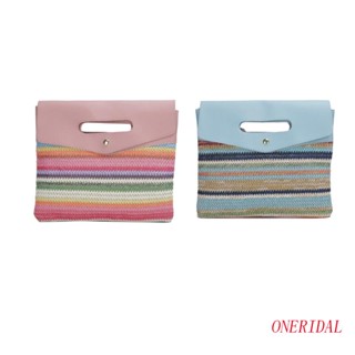 Túi Xách Đan Lát Họa Tiết Kẻ Sọc Cầu Vồng Phong Cách Bohemia