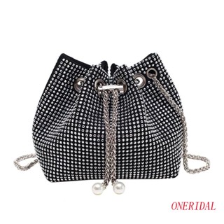 Ví Cầm Tay Dự Tiệc Bằng Lụa Xếp Ly Đính Đá Rhienstone Có Dây Xích Đeo Chéo Cho Nữ