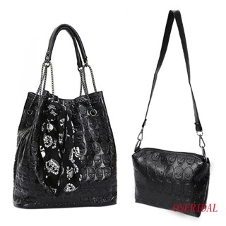 Set 2 Túi Xách Tay / Đeo Vai / Cầm Tay In Họa Tiết Đầu Lâu Cho Nữ