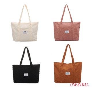 Túi Tote Đeo Vai Vải Nhung Kẻ Có Khóa Kéo Sức Chứa Lớn Phong Cách Vintage