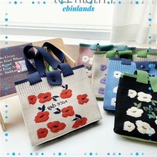 EBINLANDS Túi Xách Đan Len Họa Tiết Hoa Thắt Nút Xinh Xắn
