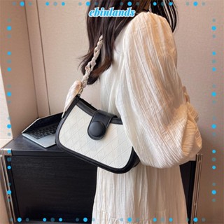EBINLANDS Túi Đeo Vai / Kẹp Nách Bằng Da PU Họa Tiết Sọc Caro Màu Trơn Phong Cách Vintage Thời Trang Cho Nữ