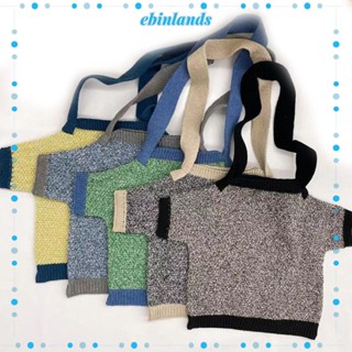 EBINLANDS Túi Xách Đan Len Thủ Công Họa Tiết Kẻ Sọc Thời Trang