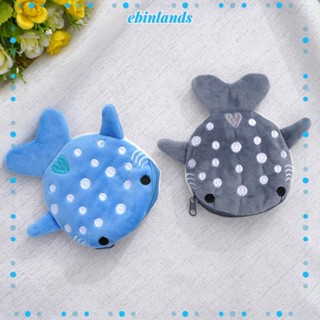 EBINLANDS Túi Đựng Tiền Xu Hình Cá Mập Bằng Lông Nhung Có Khóa Kéo Cho Bé