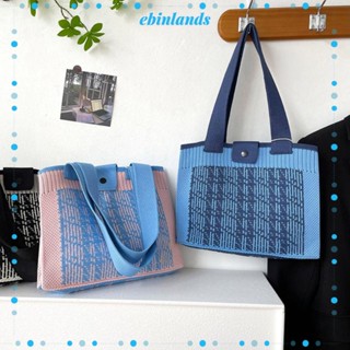 EBINLANDS Túi Xách Đan Len Sức Chứa Lớn Họa Tiết Kẻ Sọc Thời Trang Cho Nữ