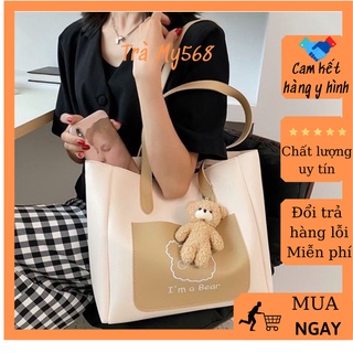 Túi xách nữ , túi đựng a4 ,ipad ,laptop có khóa miệng đi học , đi làm,đi chơi tặng kèm gấu TM_48
