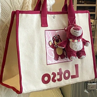 Túi Xách Đeo Vai Vải Bạt In Hình Gấu Dâu Tây Thời Trang Sành Điệu