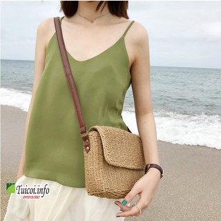 Túi cói đeo chéo hàn quốc khóa Q phong cách trẻ trung và sang trọng cho nàng dạo phố