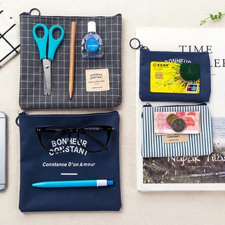 VÍ UNISEX vải CANVAS đựng Tiền - Mỹ Phẩm - Thẻ kẻ sọc