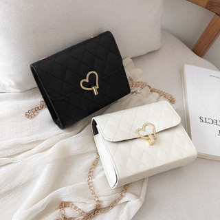 Túi đeo chéo nữ da trần chỉ caro khóa trái tim