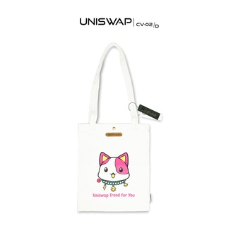 Túi đeo vai, mẫu túi tote đi học vải canvas UNISWAP CV-02/A - màu trắng họa tiết cute