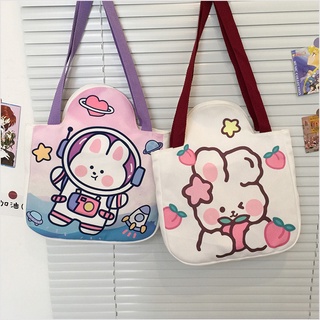 Túi Xách Vải Canvas Cỡ Lớn In Họa Tiết Thỏ Hoạt Hình Phong Cách Nhật Hàn Cho Nữ