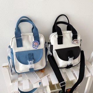 Túi Đeo Chéo Canvas Dáng Vuông Nhỏ Màu Tương Phản Thời Trang Cho Nữ
