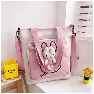 Túi Xách Đeo Vai Vải Bạt Mềm Họa Tiết Thỏ Đáng Yêu Dành Cho Nữ